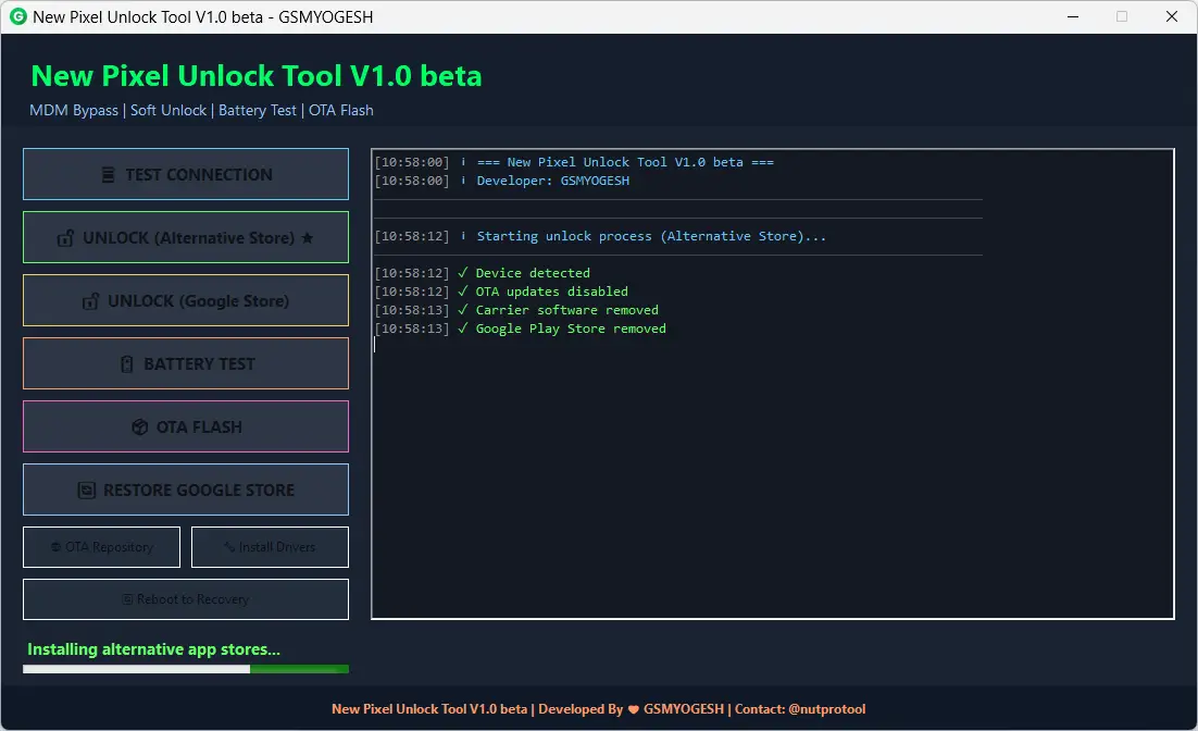 Pixel Unlock Tool V1.0 Beta is a free Windows tool made for Google Pixel devices to remove MDM lock and carrier lock. It allows users to unlock the phone and use any SIM without root or complicated steps. The tool works with a simple one-click process and is designed for both normal users and technicians.